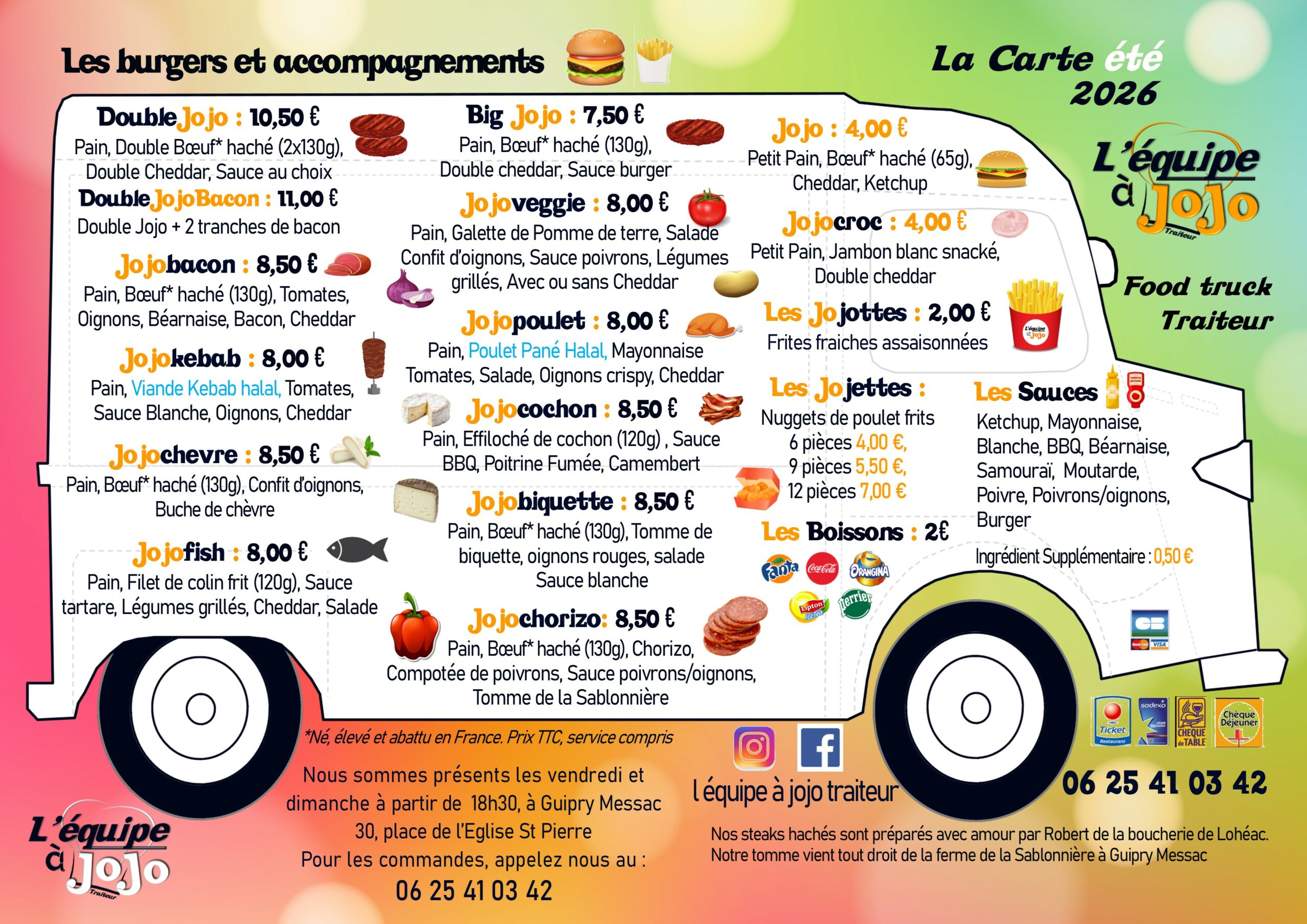 Anniversaires, mariages, fêtes de famille, repas d’entreprises, toutes les occasions sont bonnes pour faire appel à l’équipe à Jojo !